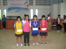 ประเภทที่ 1 ชนะเลิศหญิงเดี่ยว อายุ 18 ปี ได้แก่ น.ส.ปาริฉัตร ประสพสุข อายุ 15 ปี