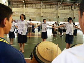 ในช่วงเวลาที่ผ่านมาตั้งแต่ก่อนงานคืนสู่เหย้าและหลังงานคืนสู่เหย้า ถ้าใครสังเกตจะพบว่ามีกลุ่มนักเรียนตั้งวงซ้อมเต้นตามจังหวะกลองและเสียงร้องเพลงอยู่ตามที่ว่างในมุมต่างๆของโรงเรียน ทุกคนมีความมุ่งมั่นอย่างเต็มเปี่ยมในการฝึกซ้อมเพื่อนำไปโชว์กันในวันกีฬาสีที่จะถึงในวันที่ 8-9 ธันวาคมนี้ รายละเอียดของงานเป็นอย่างไรนั้น BRR NEWS ยังไม่ทราบ แต่ได้เริ่มเข้าสังเกตุการณ์การฝึกซ้อมของนักเรียนกลุ่มสีต่างๆ เสียงกลอง เสียงร้องเพลงเชียร์ ดังกระหึ่มไปทั่วโรงเรียนหลังจากเวลาเรียนในตารางเรียนหมดลง การฝึกซ้อมจะดำเนินต่อเนื่องไปจนถึงเย๊นเกือบค่ำ ทั้งหมดจึงแยกย้ายกันกลับบ้าน