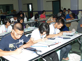 วิทยาศาสตร์ วันนี้ (2 ตุลาคม 2555) BRR NEWS ได้ขึ้นไปสำรวจกิจกรรมค่าย สอวน. ฟิสิกส์ ที่อาคาร 2 ชั้น 7 ที่เป็นที่เรียน ที่ปฏิบัติกิจกรรมทางวิชาการของค่าย สอวน. ครั้งนี้ เมื่อขึ้นไปถึงพบว่านักเรียนทั้งสองกลุ่ม คือกลุ่มค่ายศูนย์เบญจมฯ และศูนย์ ม.บูรพา กำลังเคร่งเครียดกับการทดลองปฏิบัติการทางฟิสิกส์ ซึ่งนักเรียนทั้งสองกลุ่มต้องใช้ความสามารถทางด้านการคำนวณหาค่าการทดลอง เรียกว่านักเรียนที่เป็นสมาชิกค่ายทุกคนต่างจ้องมองการบรรยายและการสาธิตของวิทยากรกันเขม็งเลยทีเดียว