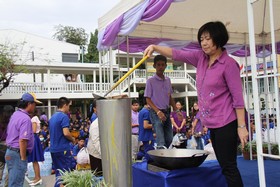 กิจกรรมหล่อเทียนในวันนี้ ผู้อำนวยการชาติชาย ฟักสุวรรณ เปิดกิจกรรมหล่อเทียนเป็นคนแรก ก่อนที่จะเดินทางไปร่วมพิธีถวายพระพรสมเด็จพระบรมโอรสาธิราช สยามมกุฏราชกุมาร ที่ศาลไทยหน้าศาลากลางจังหวัดฉะเชิงเทรา ตามมาด้วยรองผู้อำนวยการ และคุณครู ตลอดจนนักเรียน .. โดยจะเปิดให้ครูและนักเรียนร่วมเทเทียนหล่อกันในวันนี้จนกว่าจะเสร็จสมบูรณ์