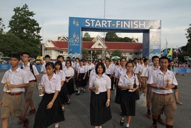 ในส่วนของโรงเรียนเบญจมราชรังสฤษฎิ์นั้น นายประดิษฐ์ ขมจริง หัวหร้าระดับชั้น ม.4 พร้อมด้วยคุณครูที่ปรึกษา ต่างเดินทางทางไปพร้อมนักเรียนซึ่งเดินเป็นขบวนจากสนามหน้าโรงเรียนไปยังสนามหน้าศาลากลางจังหวัด และคุณครูส่วนหนึ่งได้ร่วมกับผู้อำนวยการชาติชาย ฟักสุวรรณ ขึ้นวางพานพุ่มเงินพุ่มทองถวายสักการะต่อหน้าพระบรมฉายาลักษณ์ของสมเด็จพระนางเจ้าฯ พระบรมราชินีนาถด้วย