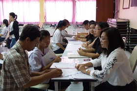 Newsวันนี้ (1 พฤษภาคม 2560) ตั้งแต่เวลา 8.30 น. ณ ห้องโสตทัศนศึกษา ฝ่ายวิชาการได้นัดหมายนักเรียนเรียกสำรองชั้น ม.4 มารายงานตัวและมอบตัวเข้าเรียน ซึ่งมีผู้ปกครองนำบุตรหลานเดินทางมารายงานตัว/มอบตัว จำนวนหนึ่ง โดยรองฯอดินันท์ เดชพงษ์ ได้นำคณะกรรมการให้การต้อนรับ พร้อมพูดแนะนำระเบียบวิธีการในการมอบตัว และนัดหมายนักเรียนในการทำกิจกรรมขั้นต่อไป ในขณะเดียวกัน ผอ. ดร.วีระชัย ตนานนท์ชัย ได้เข้ามาพบปะพูดคุยแนะนำและกล่าวถึงนโยบายการบริหารโรงเรียนให้ผู้ปกครองรับทราบคร่าวๆ จากนั้นเป็นพิธีการรับมอบตัวนักเรียนตามระเบียบจนเสร็จสิ้นกระบวนการ