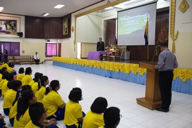 วันนี้ (8 พฤษภาคม 2560) เป็นวันนัดหมายให้นักเรียน ม.1/2560 ที่รับมอบตัวแล้ว เข้าร่วมกิจกรรมปฐมนิเทศ ซึ่งรุ่นพี่ได้จัดเป็นกิจกรรมค่ายสัมพันธ์ น้องพี่น้ำเงินเหลือง ซึ่งในวันนี้น้องๆ ม.1 เดินทางมาถึงโรงเรียนตั้งแต่เช้า เข้ารายงานตัวกับทีมงานรุ่นพี่เพื่เตรียมความพร้อมเข้าร่วมกิจกรรมที่จะเริ่มขึ้นในเวลา 8.00 น. หลังจากพิธีรวมแถวที่หน้าเสาธง ร่วมกิจกรรมภาคสนามเสร็จ ทุกคนเดินขึ้นห้องประชุมชั้น 3 อาคารสมเด็จพระเทพฯ เมื่อถึงเวลา ผู้อำนวยการ ดร.วีระชัย ตนานนท์ชัย มาเป็นประธานเปิดกิจกรรม และบรรยายพิเศษให้นักเรียนรับทราบแนวนโยบายการอยู่ร่วมกันในโรงเรียน เสร็จแล้วรองฯอดินันท์ เดชพงษ์ ในฐานะดูแลเรื่องการเรียนของนักเรียนได้ขึ้นบรรยายพิเศษแนะนำแนวทางการเรียนในระดับมัธยมศึกษาให้นักเรียนรับฟัง
