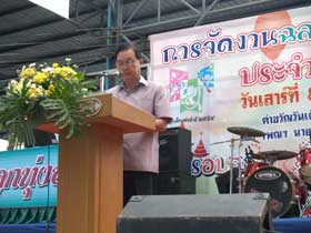 บรรยากาศทั่วไปในงานปีนี้ ไม่คึกคักเท่าที่ควร แต่อย่างไรก็ตามก็มีผู้ปกครองพาบุตรหลานเข้ามาเล่นเกมส์รับแจกของรางวัลตามซุ้มต่างๆกันมากพอประมาณ...ส่วนบนเวทีกลางก็มีการแสดงของโรงเรียนต่างๆและการแสดงดนตรีลูกทุ่งอมตะเบญจมฯ จนถึงเวลาประมาณ 12.00 น. จึงยุติการแสดง