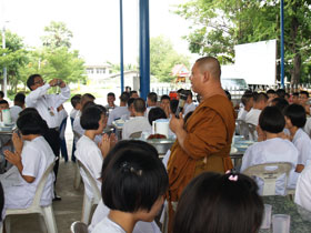 หลังจากพิธีเปิดกิจกรรมแล้ว ถึงเวลาที่นักเรียนทั้งหมดเข้ารับประทานอาหารมื้อสุดท้ายของวันที่โรงอาหารของวัด เพราะหลังจากนี้จะเป็นการเรียนและฝึกปฏิบัติโดยถือศีล 8 ไม่รับประทานอาหารมื้อเย็น ในการนี้พระอาจารย์บอกให้นักเรียนรับประทานอาหารให้มากกว่าปกติเพื่อจะได้บรรเทาความหิวในยามค่ำคืน แต่ถ้าใครหิวทางวัดจะจัดน้ำปานะเอาไว้ให้ดื่มบรรเทาหิว