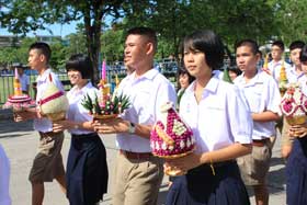 สำหรับกิจกรรมไหว้ครูของนักเรียนในปีนี้ นอกจากปฏิรูปการทำพานดอกไม้ธูปเทียนแล้ว ยังมีการเดินขบวนแห่ตราสัญลักษณ์ พร้อมธงโรงเรียน และพานดอกไม้ธูปเทียนเข้าสูบริเวณพิธีไหว้ครู สร้างความแปลกตาไปจากการจัดแบบเดิม