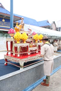 และในวันนี้ลูกเสือกองร้อยพิเศษเบญจม์จะเดินทางไปร่วมพิธีและแข่งขันเดินสวนสนามที่สนามศุภชลาศัยด้วย