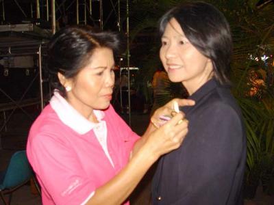 ครูบรรจง ติดดอกไม้ให้ประธานจัดงาน ก่อนขึ้นเวที